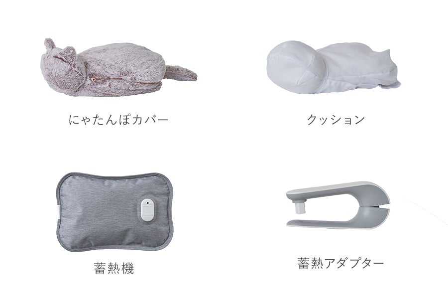 本体、蓄熱アダプター、にゃたんぽカバー(クッション装着済)、 取扱説明書 |