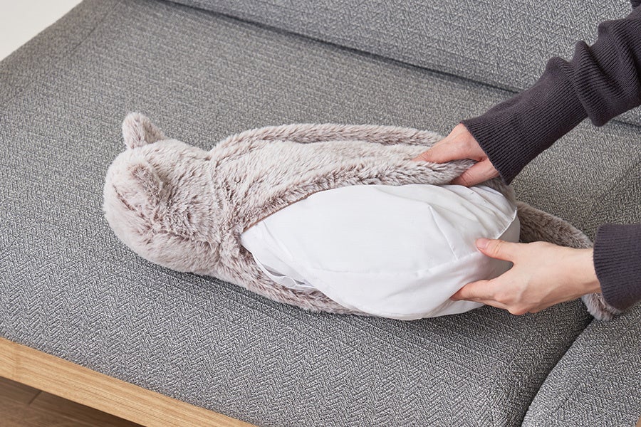 にゃたんぽのお腹部分は筒状になっているため、冷えがちな手足を入れればすぐポカポカに。