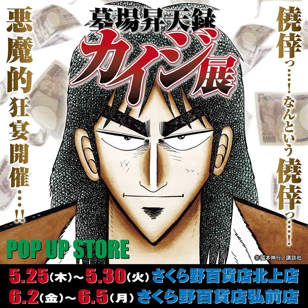 令和5年5月25日(木)〜5月30日の期間中・・・・さくら野百貨店北上店にて・・・・6月2日(金)〜6月5日(月)の期間中・・・・さくら野百貨店弘前店にて・・・・唯一無二の世界観で人気を誇るっ・・・・ギャンブル漫画『賭博黙示録カイジ』シリーズにスポットを当てたグッズストア・・・・【墓場昇天録カイジ展 POP UP STORE】を圧倒的開催っ・・・・!