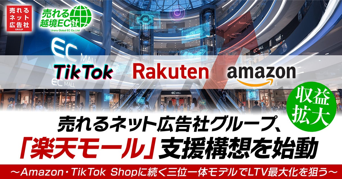 売れるネット広告社グループ株式会社(本社:福岡、代表取締役社長 CEO:加藤公一レオ、証券コード:9235、以下 売れるネット広告社グループ)の連結子会社である株式会社売れる越境EC社は、これまで「Amazon」および「TikTok Shop」支援を展開してまいりました。その次なる戦略として、国内最大級モール「楽天モール(楽天市場系)」に対する支援サービスを正式に開始したことを、ここにご報告いたします。