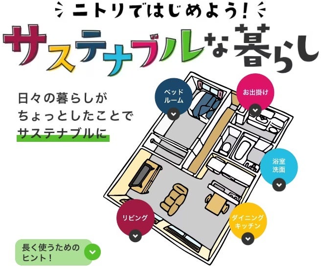 株式会社ニトリ(本社:札幌市北区 代表取締役社⻑:武⽥ 政則 以下:ニトリ)より、2⽉上旬よりニトリネット上で公開した「ニトリではじめよう!サステナブルな暮らし」特集ページをご紹介いたします。
