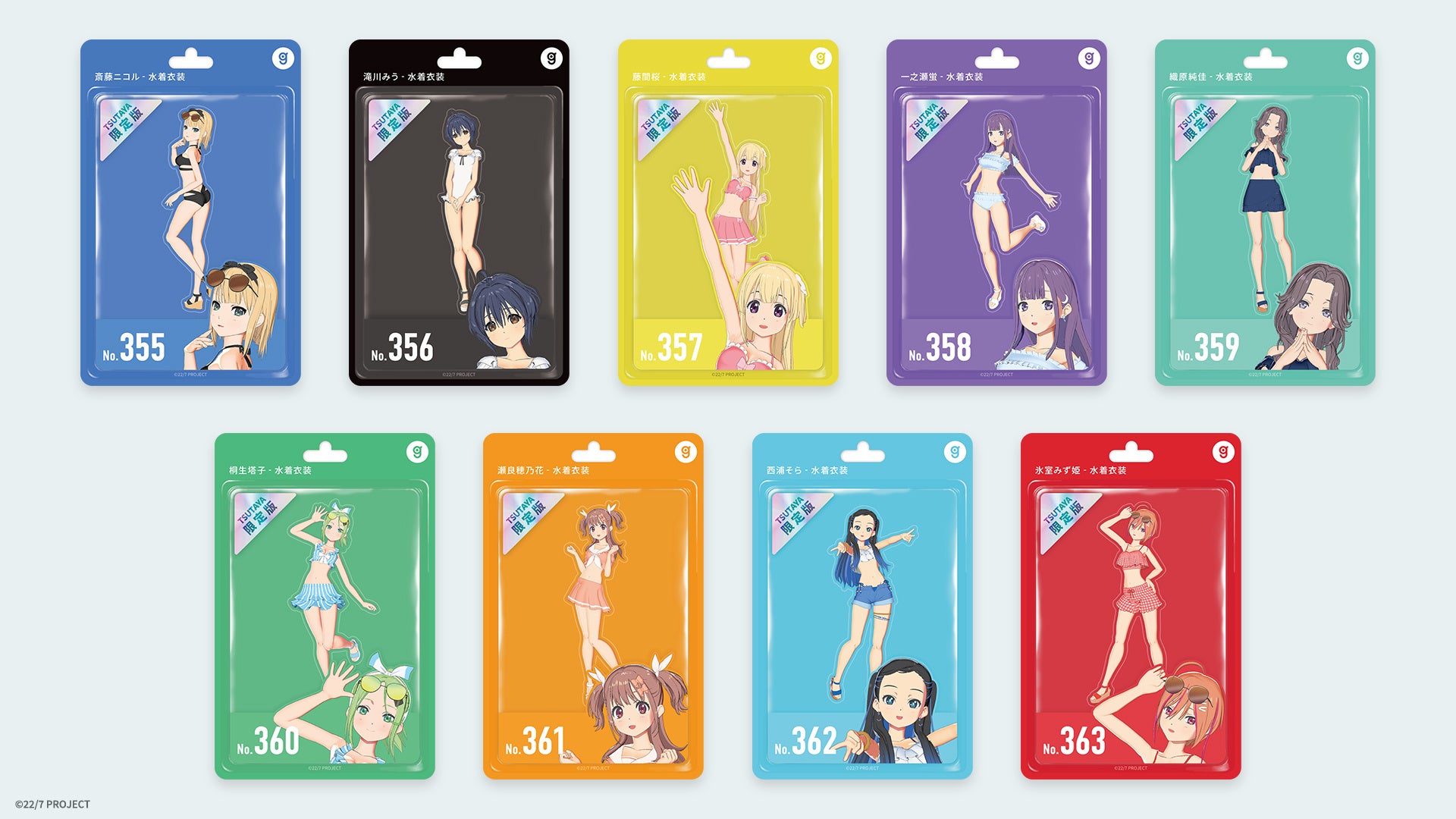 斎藤ニコル (水着衣装)/滝川みう (水着衣装)/藤間桜 (水着衣装)/一之瀬蛍 (水着衣装)/織原純佳 (水着衣装)/桐生塔子 (水着衣装)/瀬良穂乃花 (水着衣装)/西浦そら (水着衣装)/氷室みず姫 (水着衣装) 全9種