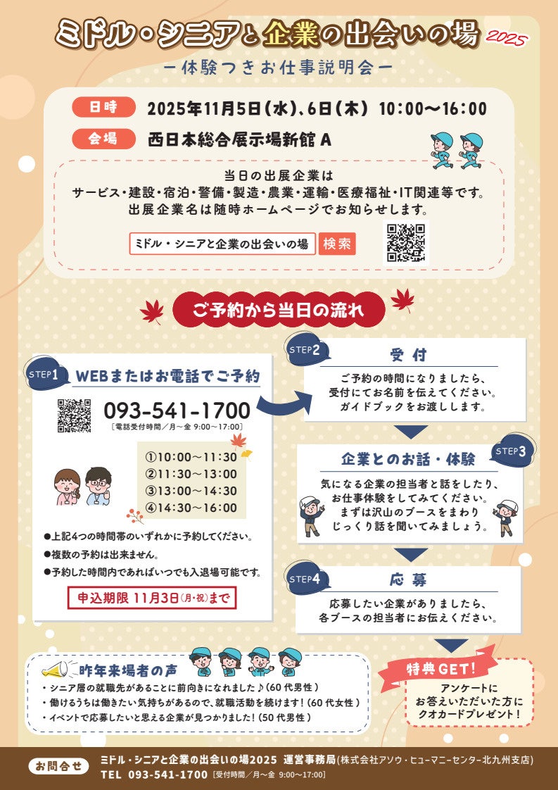 電話番号:093-541-1700(運営事務局:株式会社アソウ・ヒューマニーセンター北九州支店)
