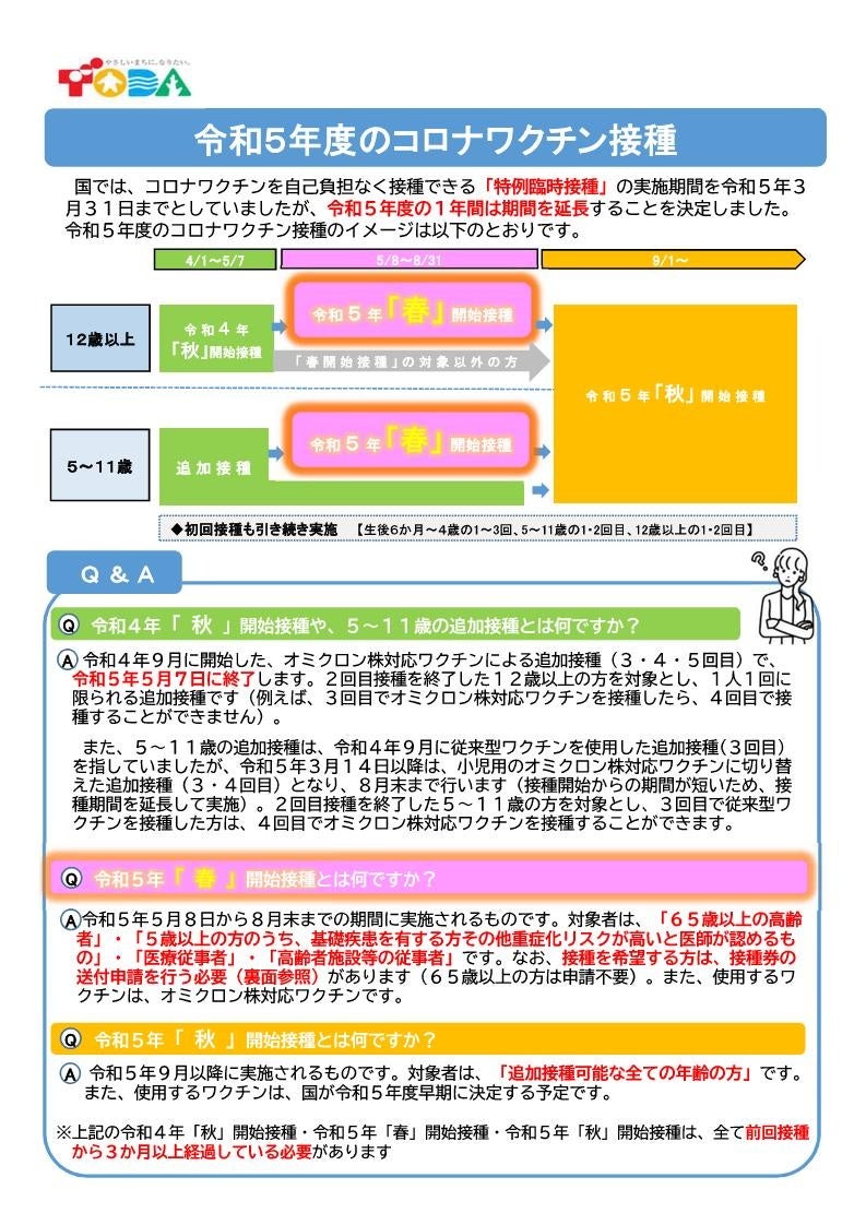 なお、令和4年秋に開始した12歳以上の追加接種は、5月7日で終了します。