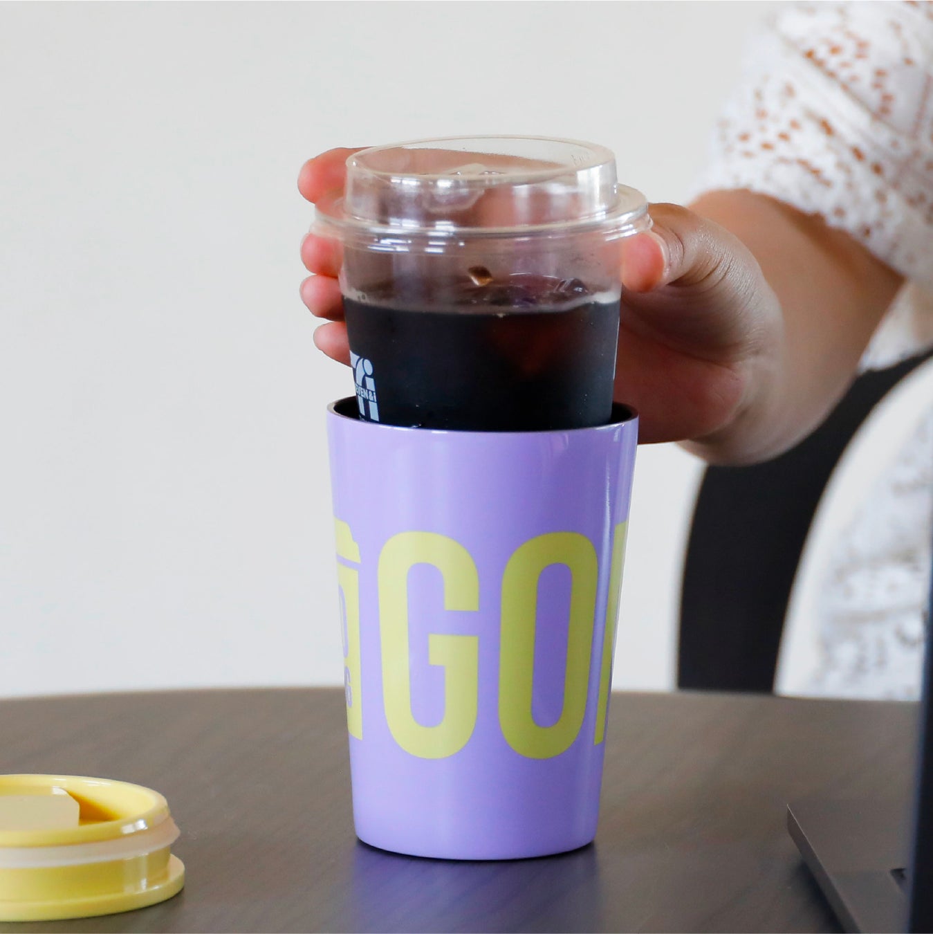 アイスコーヒーのカップがすっぽり収まり、結露を防ぐのでテーブルや手が濡れないので、仕事をしながら快適にコーヒーを楽しむことが出来ます。