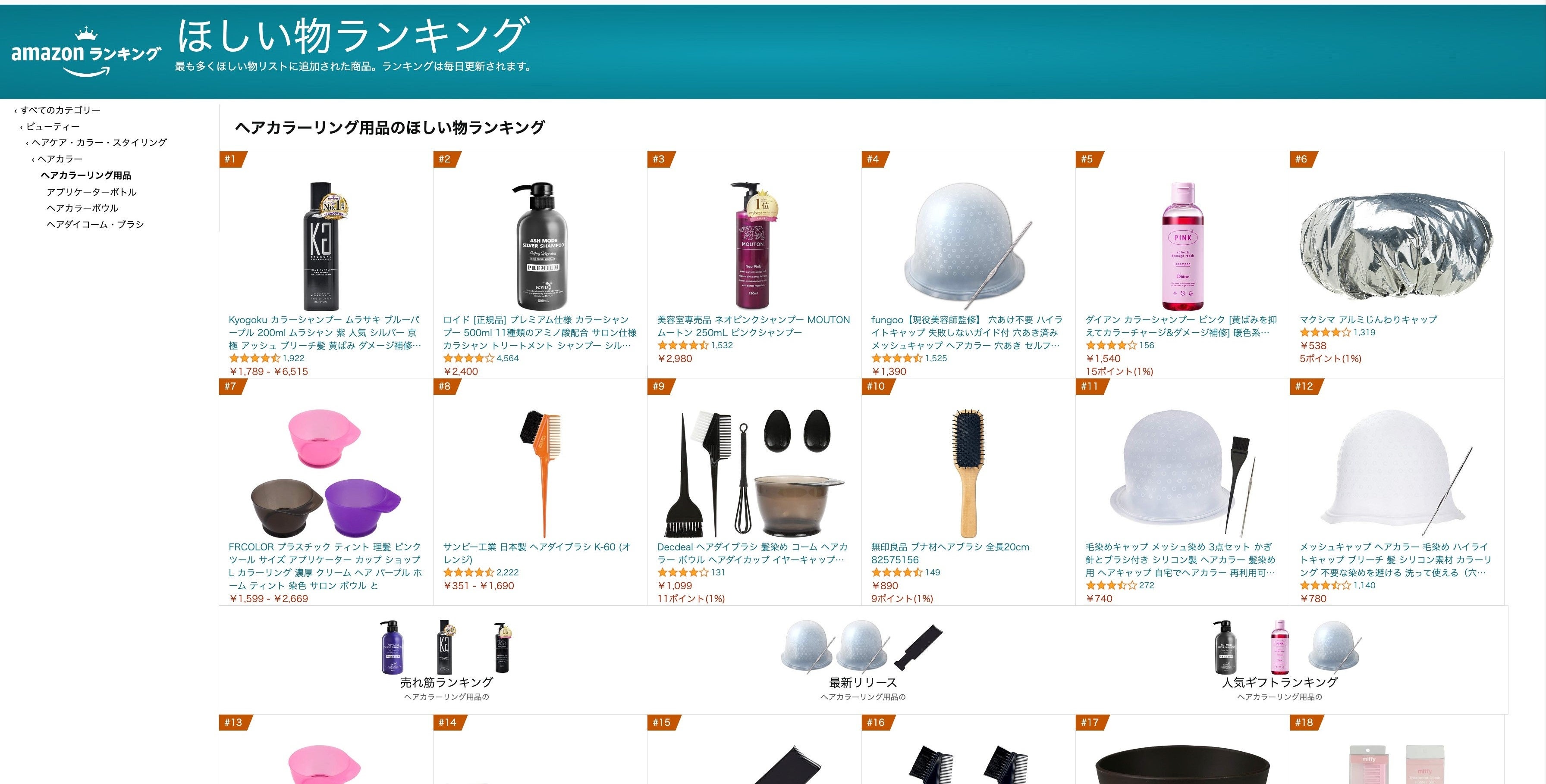 そして、KYOGOKUのブルーパープルカラーシャンプー(BP)がAmazonのヘアカラーリング部門で、欲しいものランキング1位を獲得いたしました。