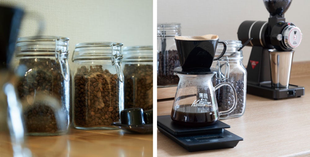 ポテル館内・3Fあわいの間にあるCOFFEE SPACEでは、COFFEE BASE Co., Ltd.の牧野広志さんより監修いただいた宿泊者のみなさまが自ら、豆を挽いてハンドドリップ体験ができるスペースがあり、今回はそのスペースで牧野さんより、直接ハンドドリップが学べます。それだけでなく、イベントでは気兼ねなく牧野さんとご縁をつないでいただけるように、ふらりと立ちより談話も楽しんでいただけます。ぜひ、この機会にポテルでしか味わえない「something luckyな体験」をご体感ください。