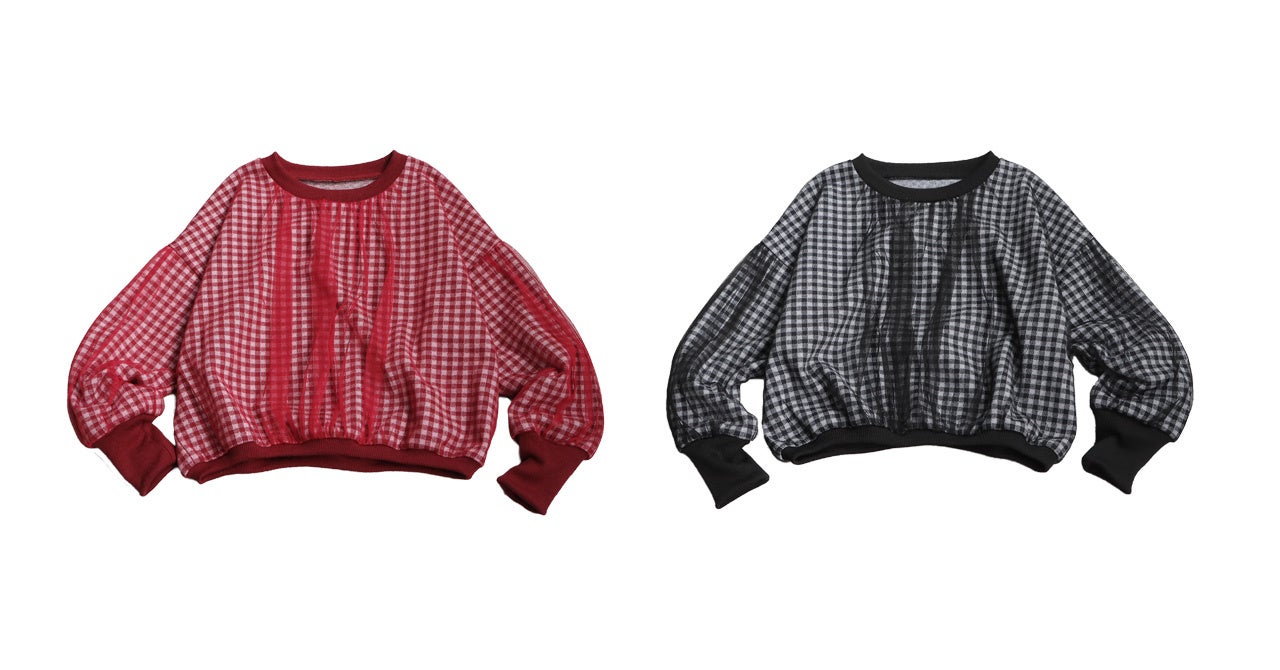 トレンドのギンガムチェックに同色チュールを重ねた一枚で主役級トップス。ダウンショルダーとショート丈で甘くならずにこなれたチエックコーデが叶う。身頃のセンターにチュールを少し寄せることで、他にはない個性もプラス。暑すぎず、薄すぎずな絶妙な厚みのカットソー素材は鹿の子編みになっていて一枚でも快適で心地いい。袖と裾のリブがふわっとシルエットを仕上げて、大満足間違いなしの着こなしやすさ。