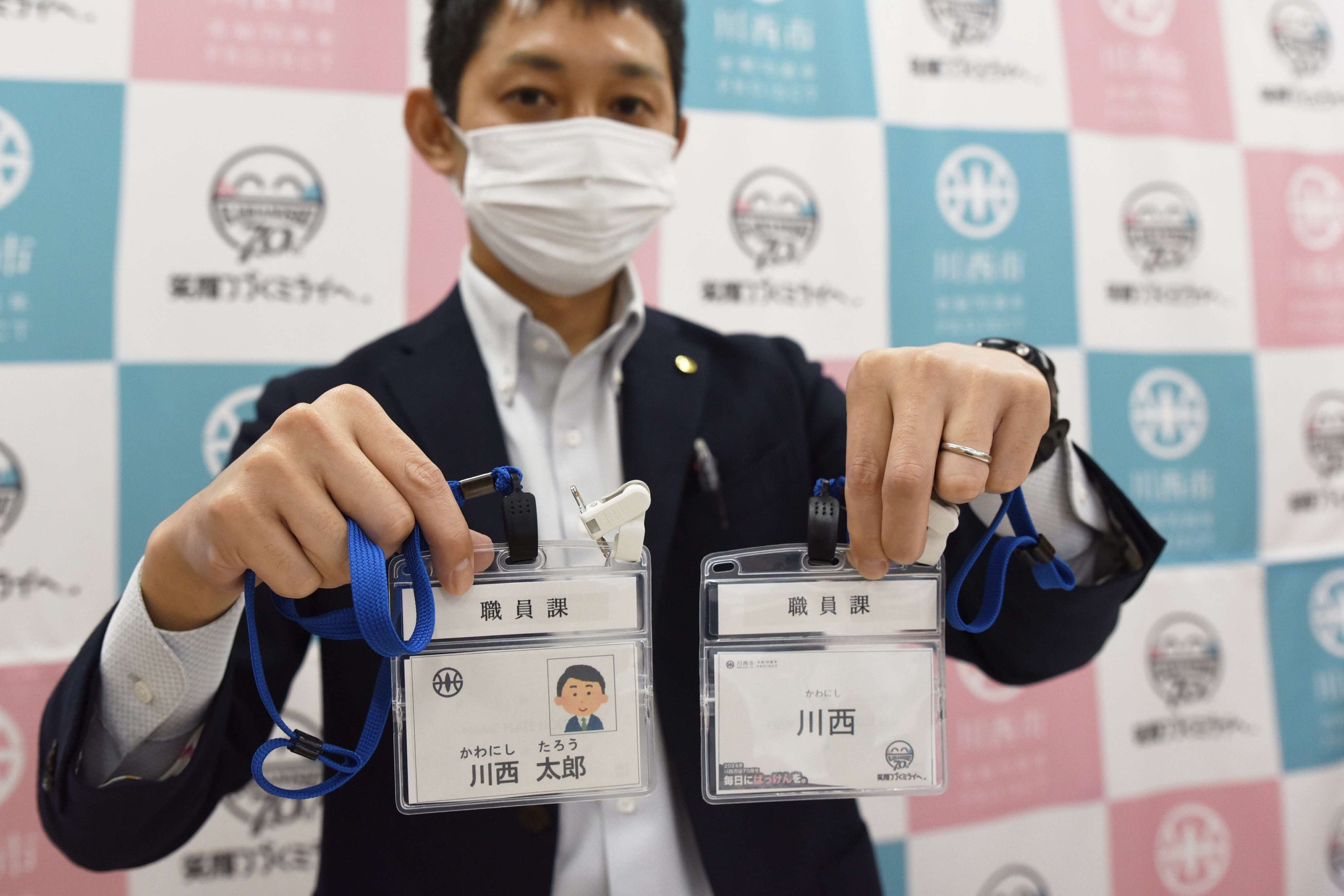 兵庫県川西市では、2024年4月18日から、職員が勤務時間中に着用する名札の表記をフルネームから名字のみにして、顔写真の掲載をやめるかたちに変更しています。