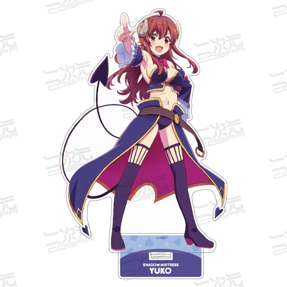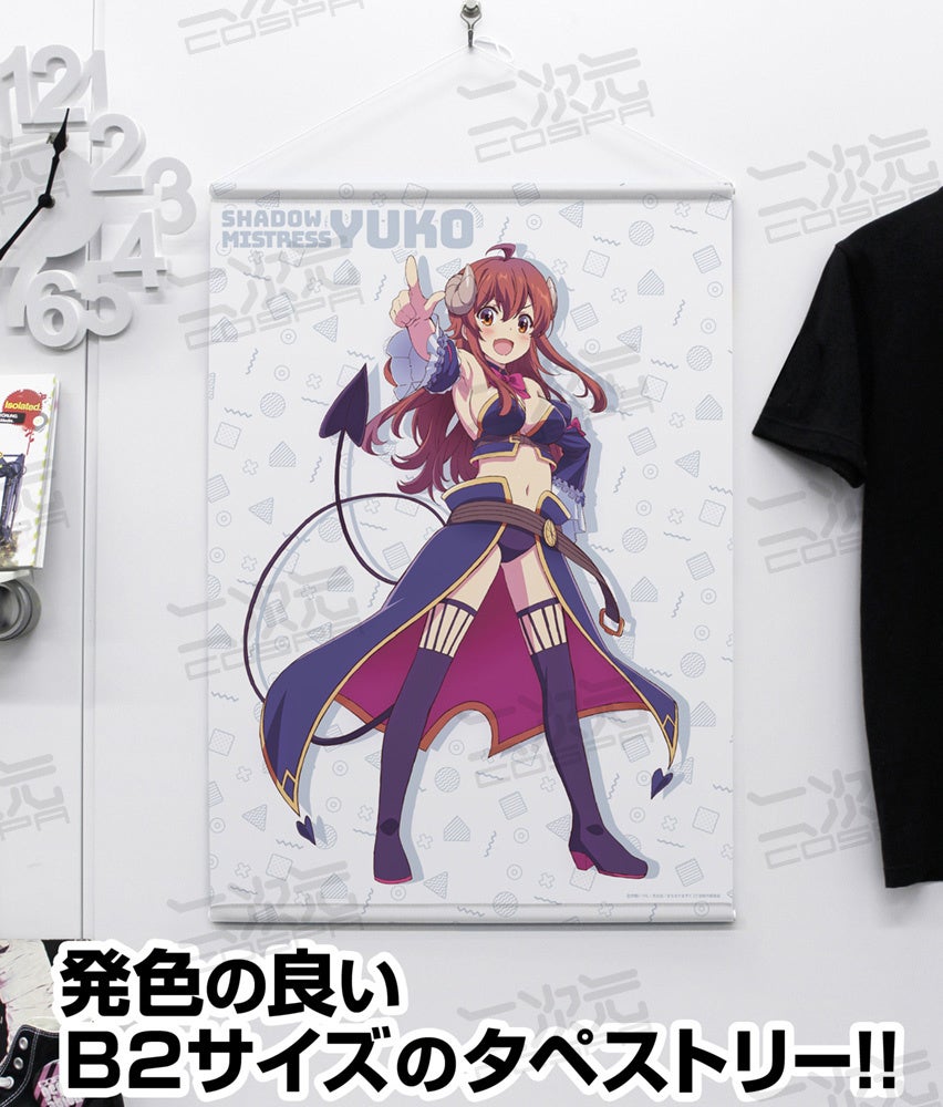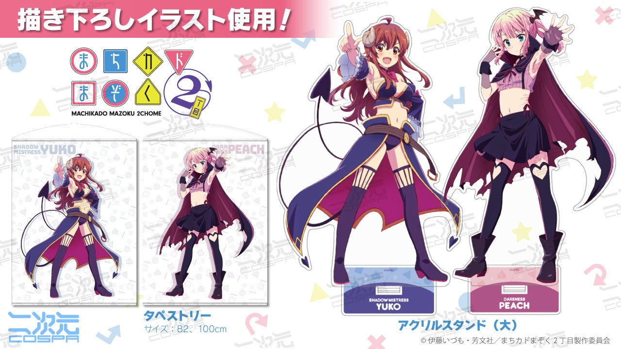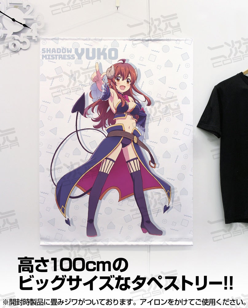 「シャドウミストレス優子」「ダークネスピーチ」の描き下ろしイラストを使用したアクリルスタンド、100cm/B2 タペストリーなど新商品が二次元コスパから登場。