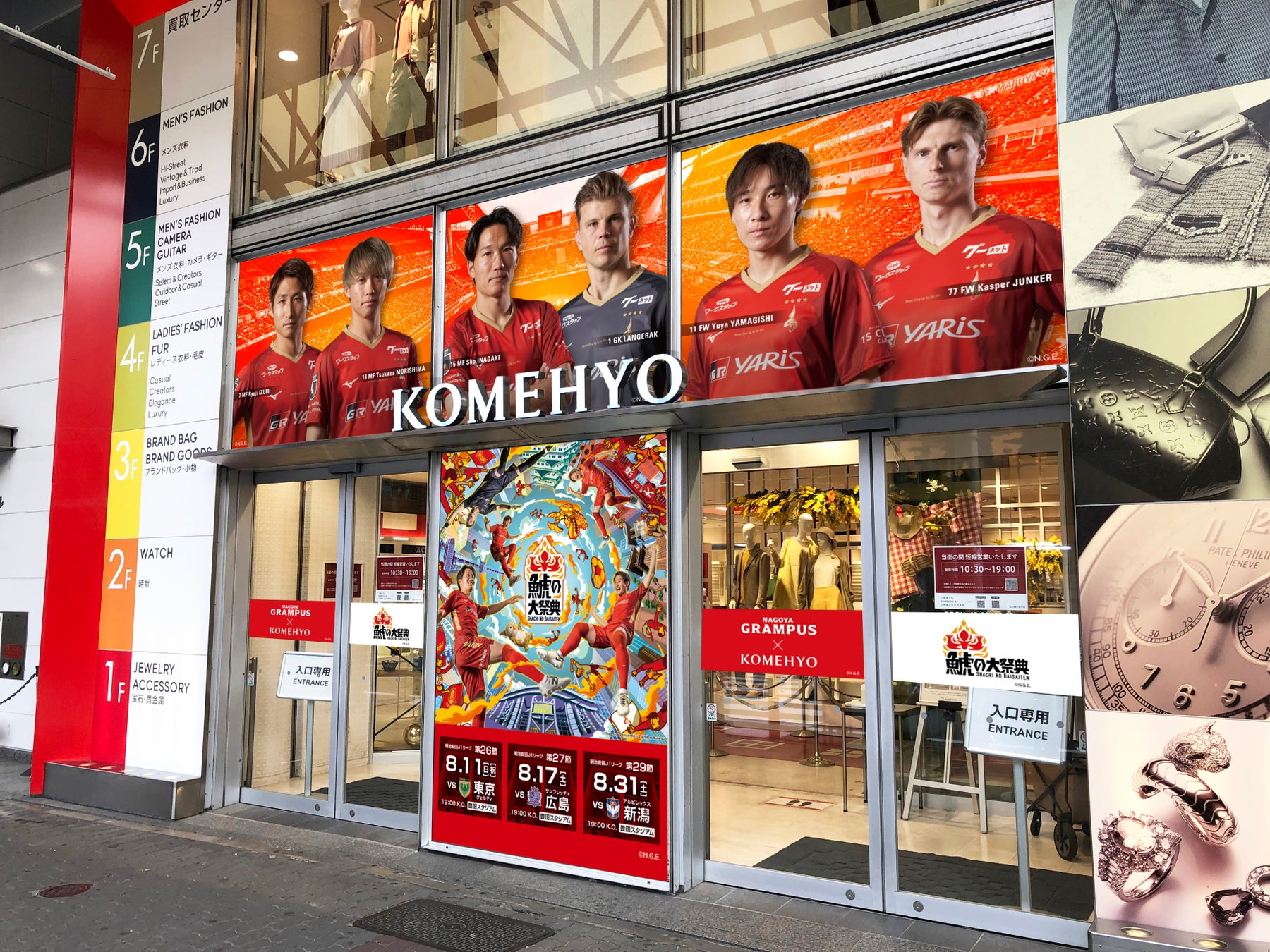名古屋グランパスの祭りが今年も始まる!KOMEHYO名古屋本店本館が、8月3日(土)~8月31日(土)の期間限定「鯱の大祭典2024」特別仕様の外観に