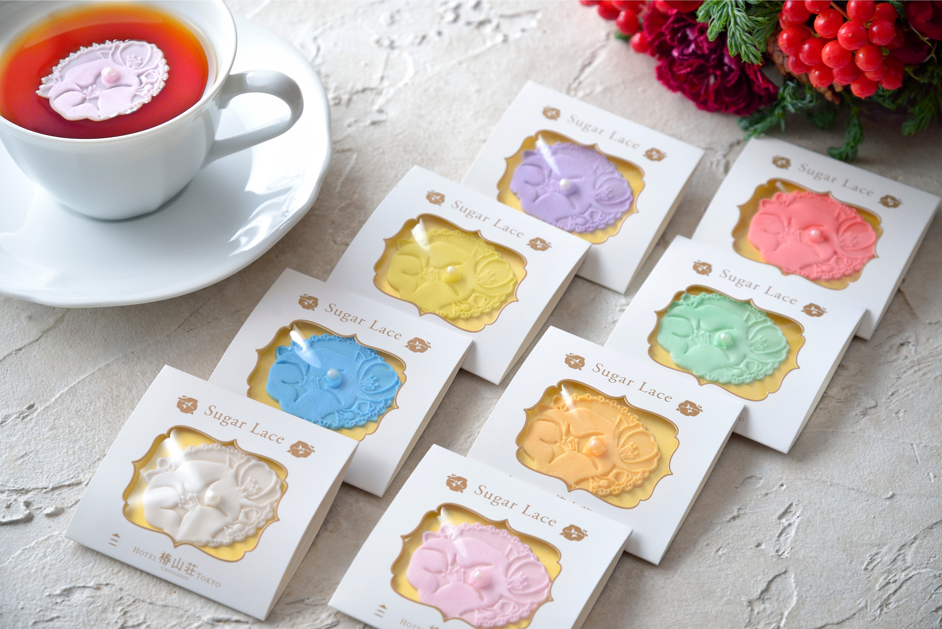 ・8色から選べるデコレーション付きケーキと紅茶(シュガーレース付き)(人数分)