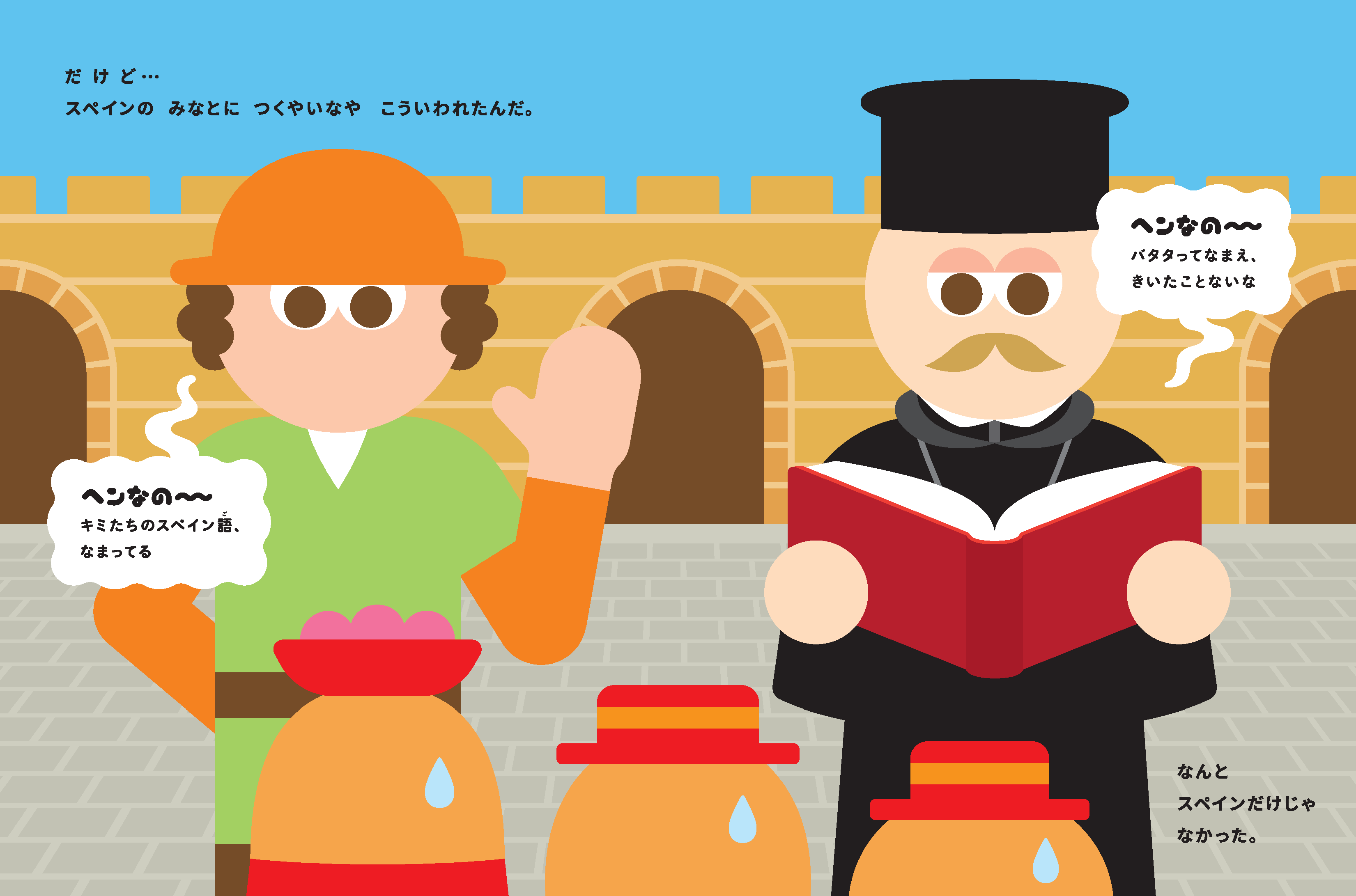 この絵本は、同じように海外にルーツを持ち、「ふつう」に合わせようと頑張っている子どもたちや、周りに合わせられず「自分はヘンだ」と思い悩むすべての人に、16世紀に原産国のぺルーからヨーロッパへとわたった移民の大先輩「じゃがいも」の実際の歴史を通じた物語で、楽しいエールを贈ります!