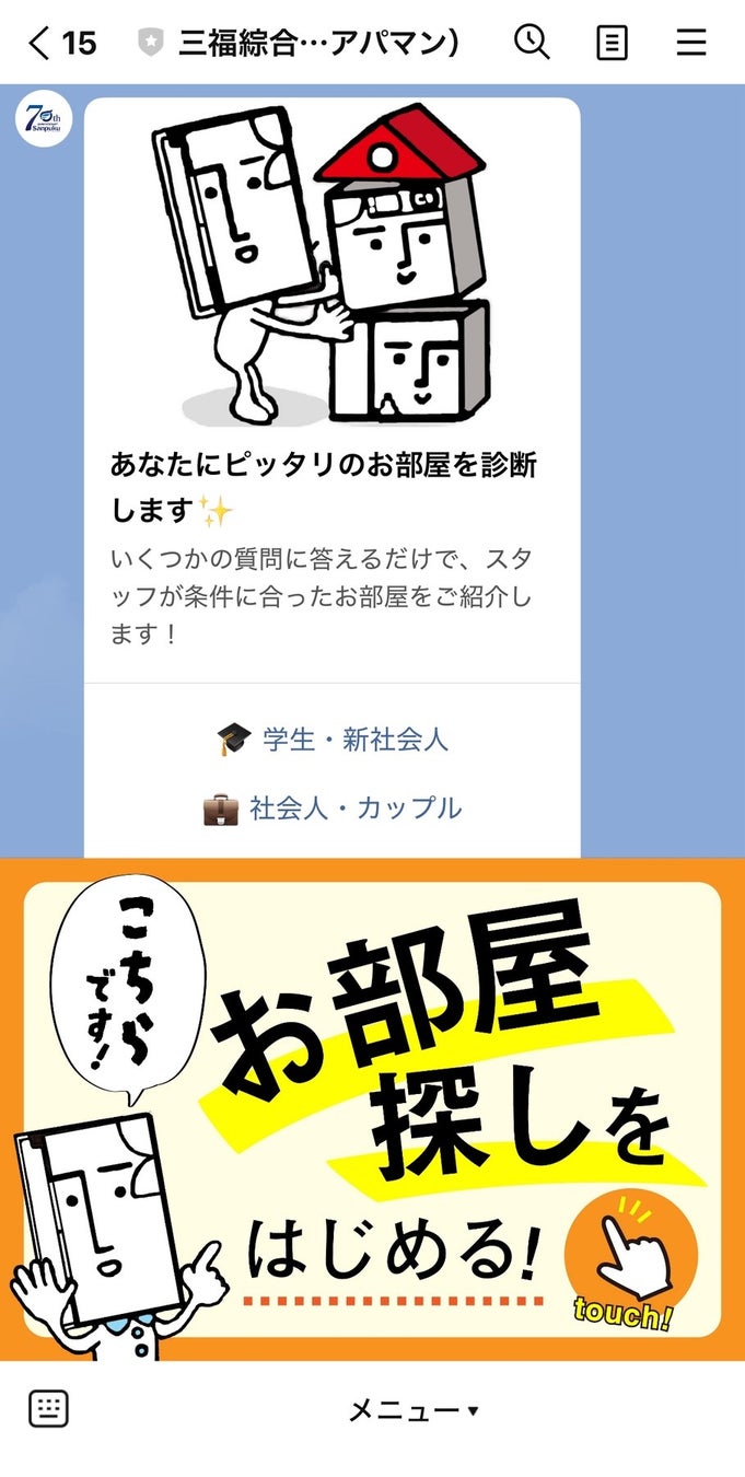 LINEでカンタンお部屋探し!三福綜合不動産が“お部屋診断”機能をリリース