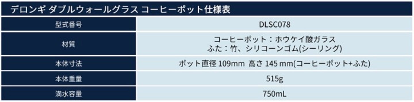 ■デロンギ ダブルウォールグラス コーヒーポット概要