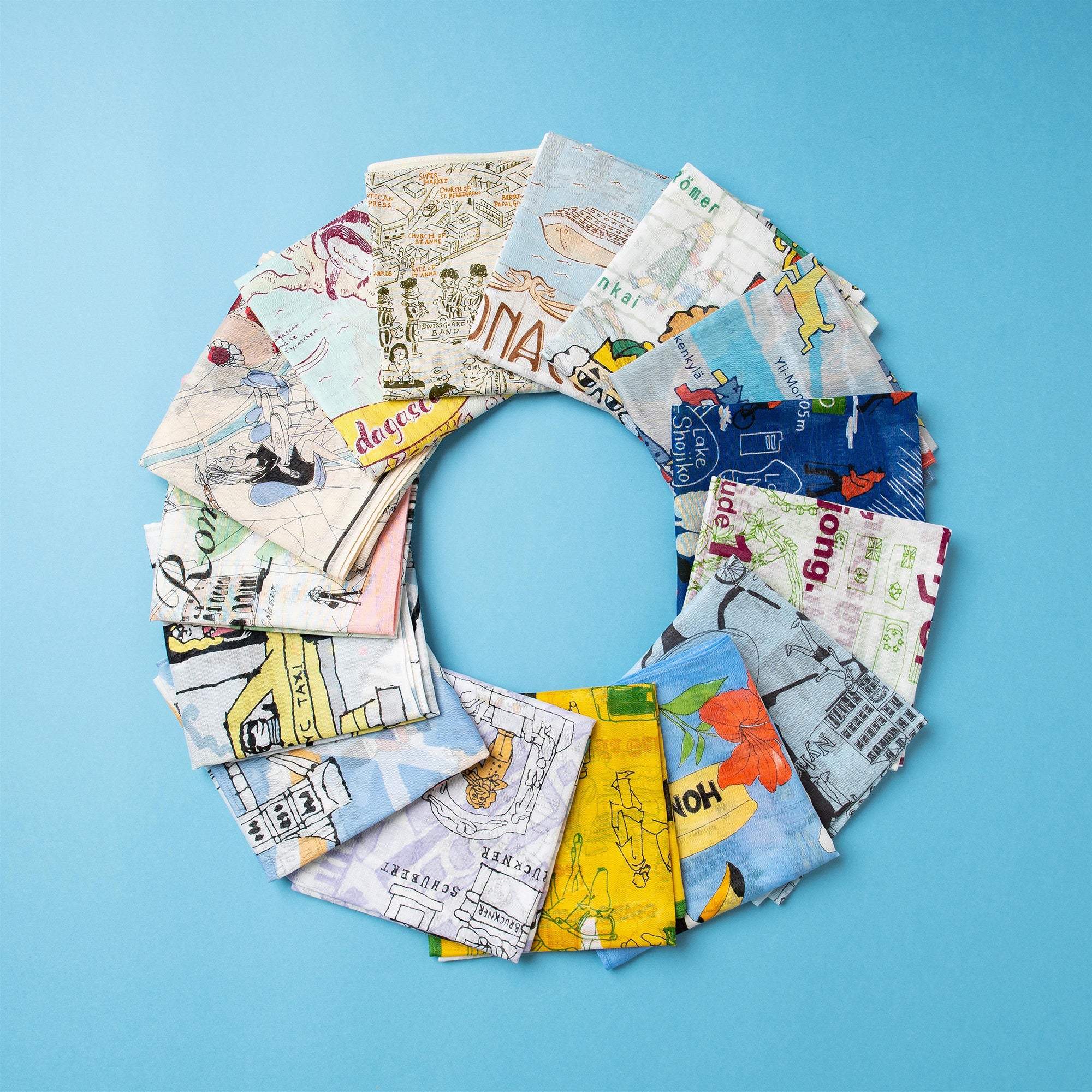 9柄 1,100円(税込) サイズ:約58cm×58cm 綿100%