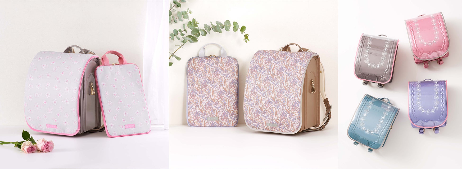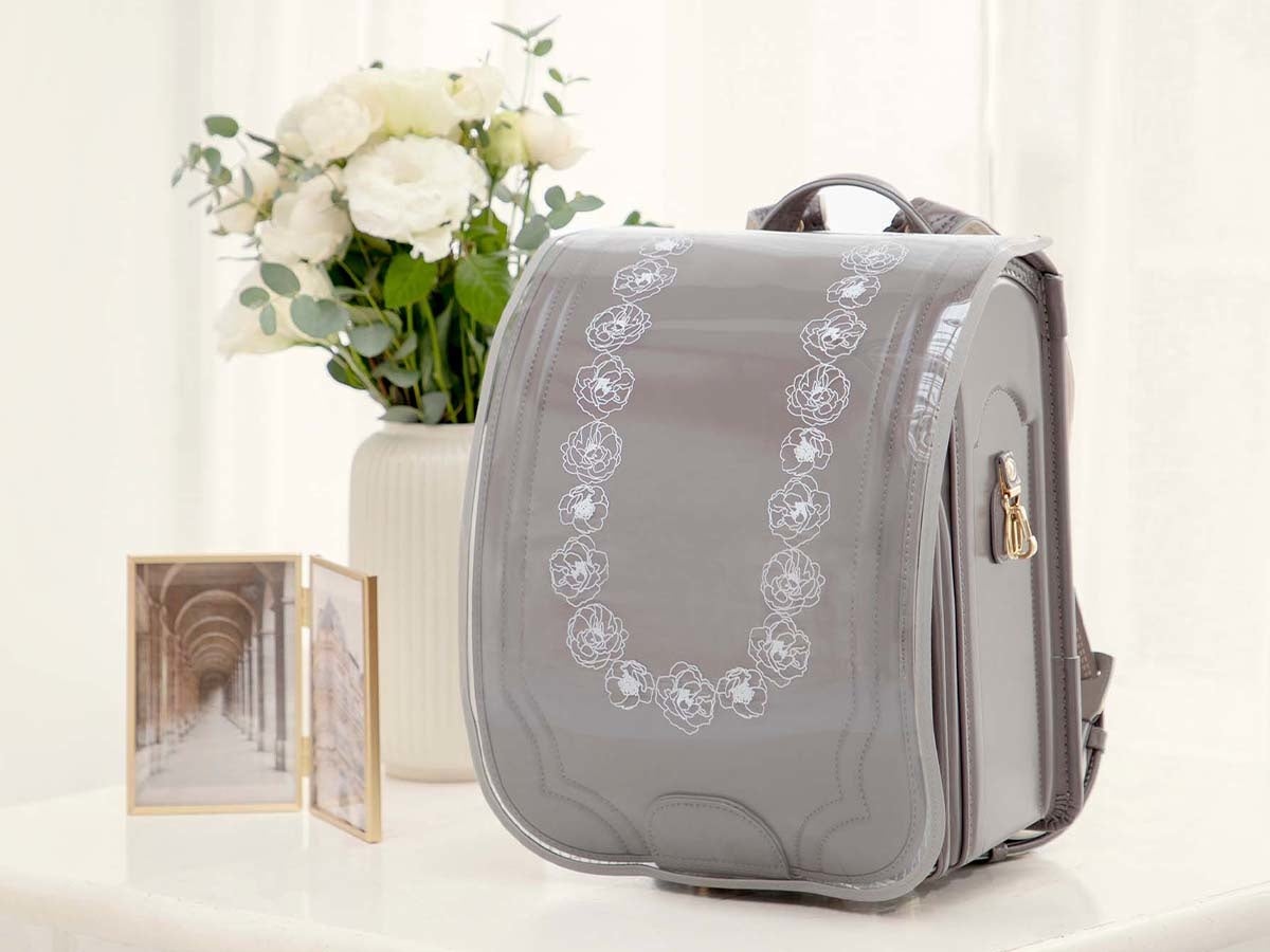 - ランドセル本来の色と薔薇の柄を一緒に楽しめるランドセルカバー 新色「クリア・グレー」