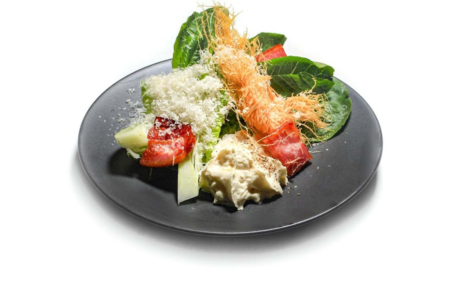 エスプーマ―で仕上げたアンチョビクリーム(シーザードレッシング)に、クルトンに見立てたカダイフの素揚げや新鮮野菜をディップしながら食べる新スタイルのサラダです。