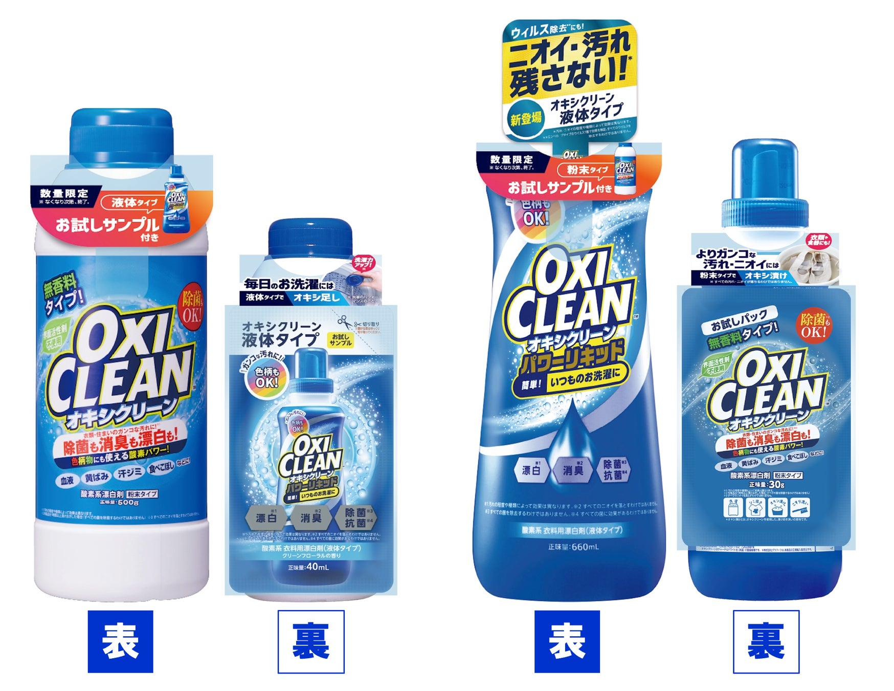 2025年3月27日(木)よりオキシクリーン主力商品「オキシクリーン 500g」と液体タイプ「オキシクリーン パワーリキッド」に相互のお試しサンプルを付け、全国にて販売を開始いたします。