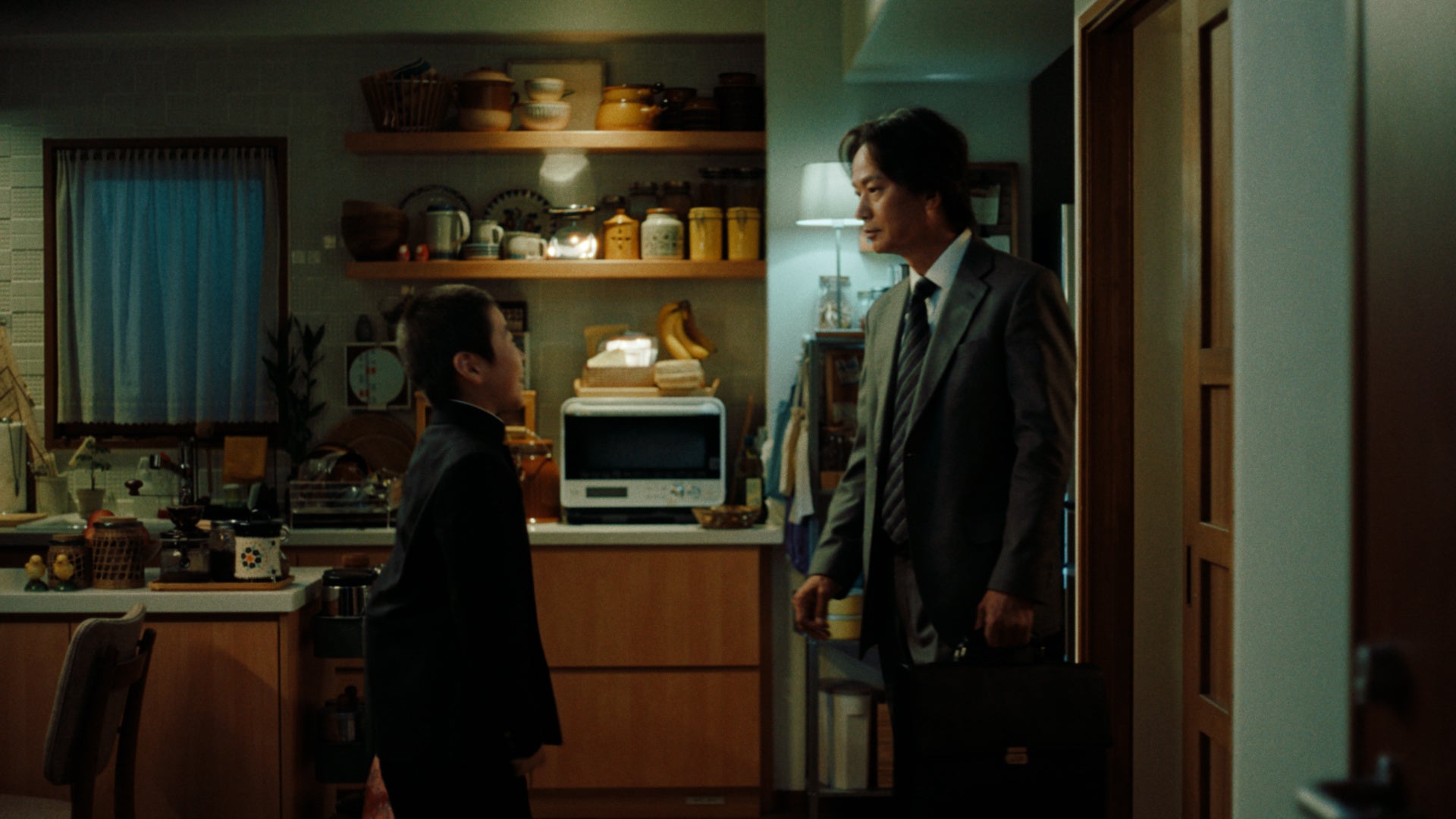 気分よく住宅街を歩く椎名さんと息子のかず坊。「最近、会社がいきいきしててな」という椎名さんに、「SmartHRのタレントマネジメントが功を奏してるね!」とかず坊も同調します。満足げに笑いながら、かず坊の頭を撫でる椎名さん。すると突然、不良グループが目の前でにらみを利かせながら道を阻みます。不良グループに対し、椎名さんは「SmartHR!!」と声を張り上げ、「タレントマネジメント!!」とかず坊も続いて叫びます。鬼気迫る二人の叫び声に不良グループは退き、二人は無事に危機を乗り越えます。かず坊にそっと肩に手を置かれ、安堵する椎名さん。椎名さん親子のスリリングなCMで、SmartHRにはタレントマネジメント機能があるということを強く印象付ける内容となっています。