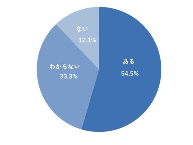 「ある」54.5%、「わからない」33.3%、「ない」12.1%という結果となった。