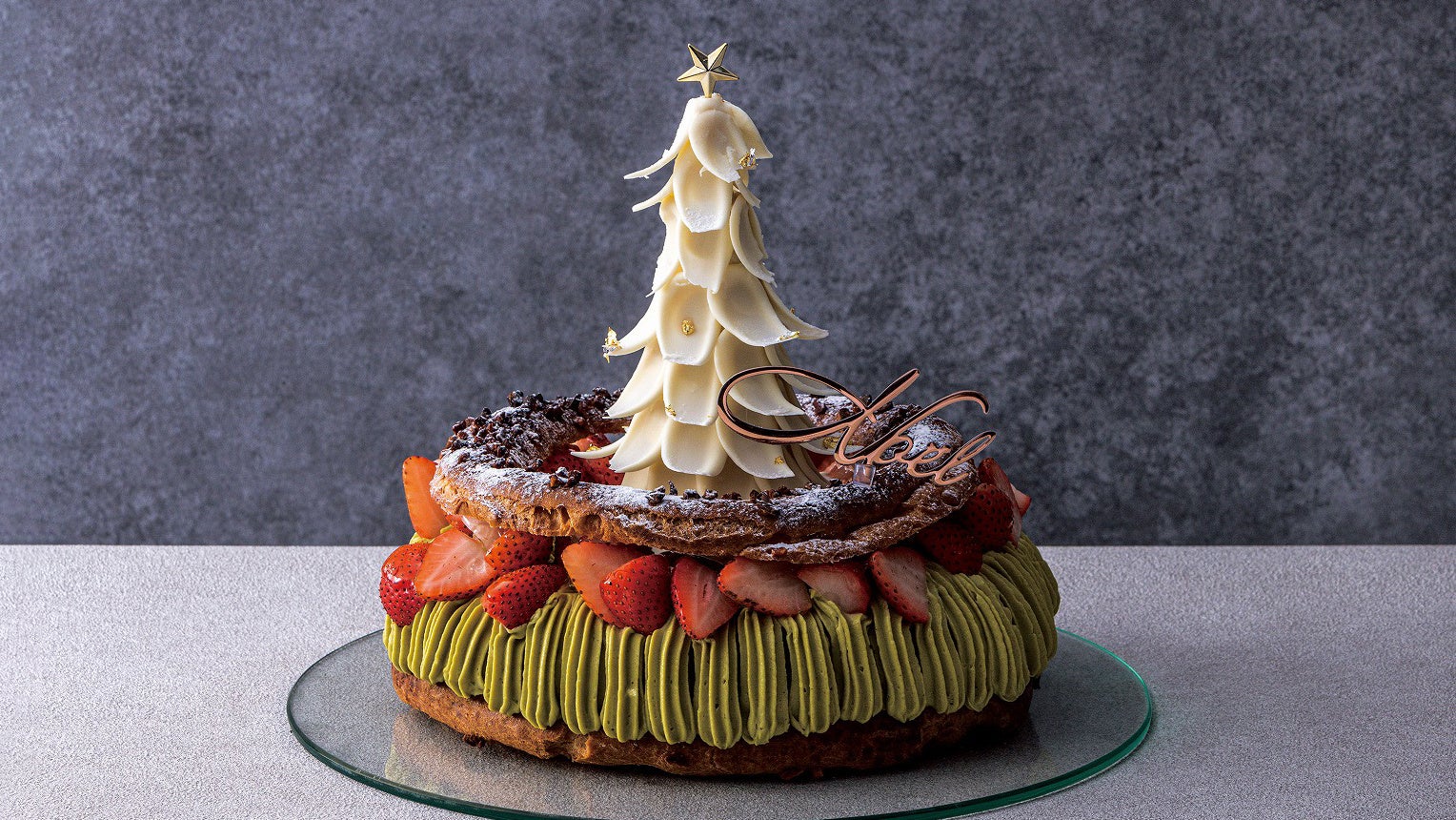 シーガイアのリブランドを記念して誕生した、エグゼクティブ シェフ・パティシエ 日吉によるスペシャルなパリ・ブレスト。同じアイコニアグループの「ホテルエピナール那須」でも使用されている栃木県産いちご「とちあいか」をふんだんに使用し、香ばしいリング状のシュー生地にムスリーヌピスターシュとハイカカオクリームを重ねました。中央には、ホワイトチョコで作り上げた可憐なクリスマスツリーを飾り、特別な夜にふさわしい華やぎを添えます。