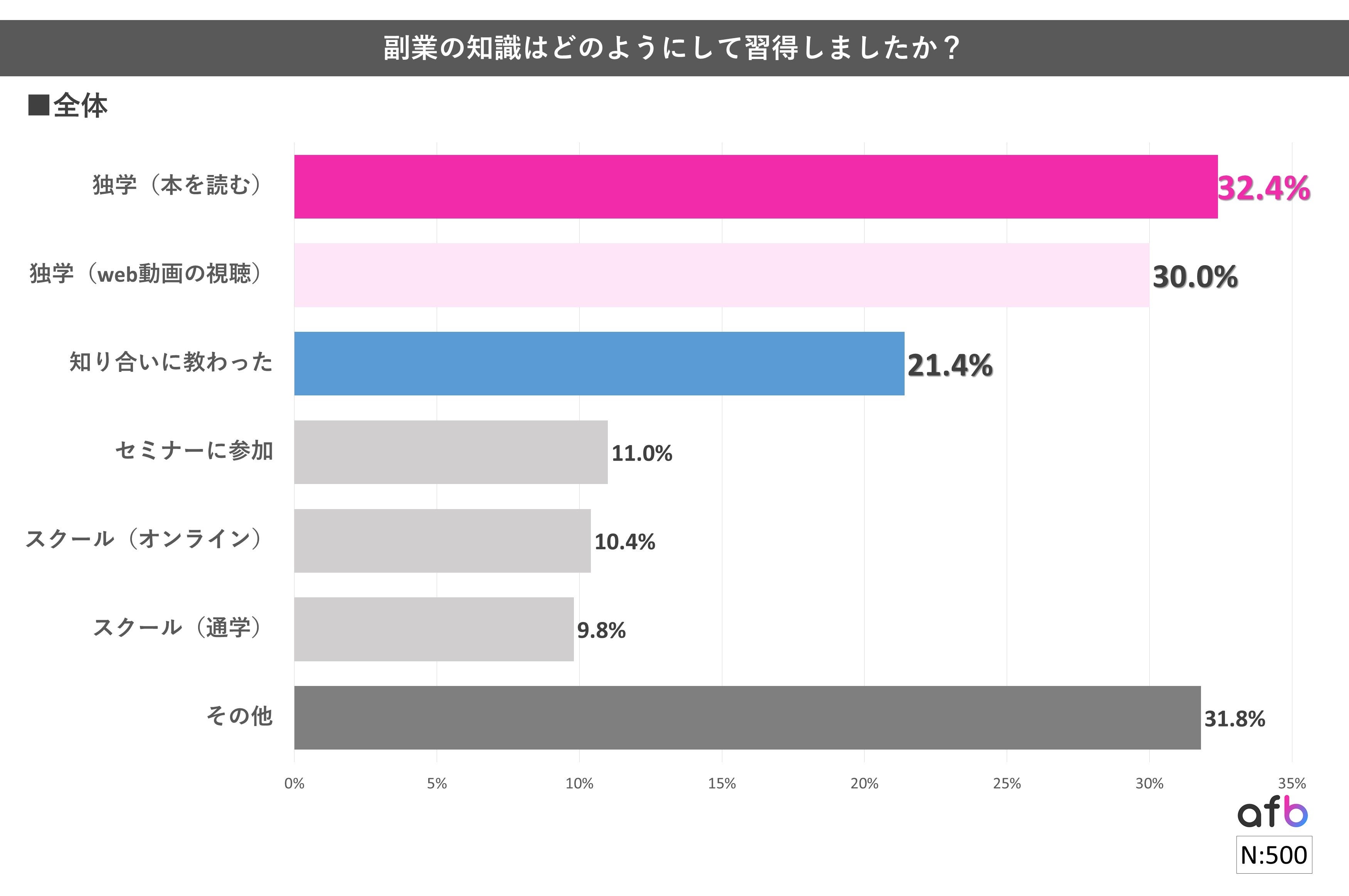 32.4%は「本での独学」。取り組む副業によって勉強方法も異なる結果に!