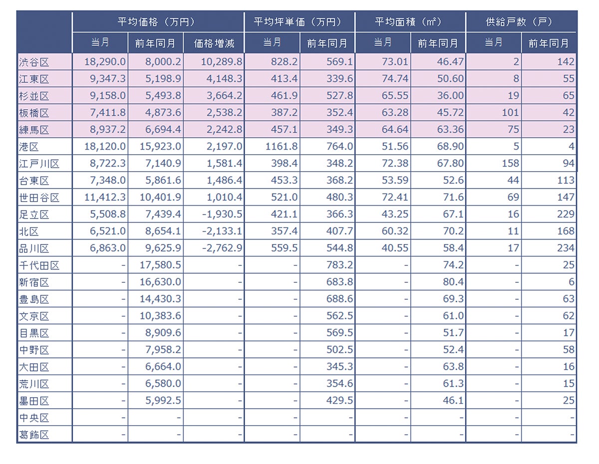 当社が調査した2024年9月の東京23区、行政区別分譲実績データ(速報値)です。