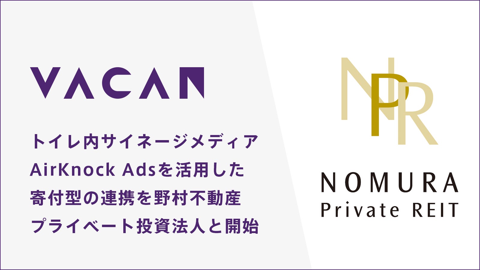 AIとIoTを活用して「待ち」をなくすサービスを提供するスタートアップ、株式会社バカン(本社:東京都千代田区、代表取締役:河野剛進、以下「バカン」)は、野村不動産投資顧問株式会社が運営を受託している野村不動産プライベート投資法人が保有する野村不動産新横浜ビル及びクリエ川崎に、トイレの混雑抑止メディアサービス「VACAN AirKnock Ads(バカン エアーノックアッズ、以下 AirKnock Ads)」を提供します。