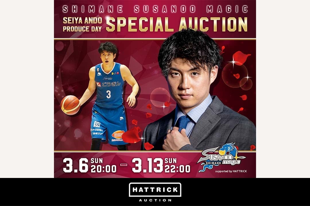 スポーツ公認オークション「HATTRICK」、島根スサノオマジック SEIYA ANDO Produce day Special Auction開催!