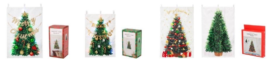 手軽にクリスマス気分を楽しめる省スペースにもおすすめのタペストリーツリーはオーナメントやガーランドがセットになったスターターセットとリバーシブルタイプをラインアップ。シンプルなヌードツリーにお好みのオーナメントを飾り付けて楽しむこともできます。