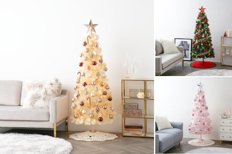 コーディネートされたクリスマスツリーのマストアイテムが全て揃っている、人気のスターターセットです。今年は華やかなゴールドが新登場。場所を取らないので省スペースでも簡単にクリスマスデコレーションを楽しむことができます。ご家族で楽しめる150cmと一人暮らしでも飾りやすい60cmの2サイズをラインアップ。