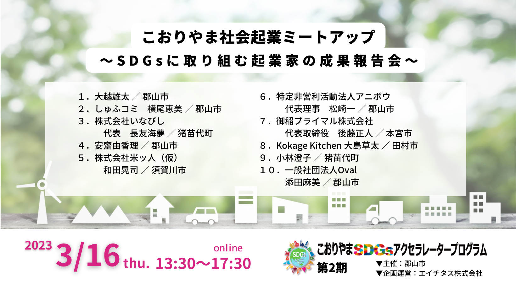 SDGsに取り組む起業家の成果報告会「3/16こおりやま社会起業ミートアップ」