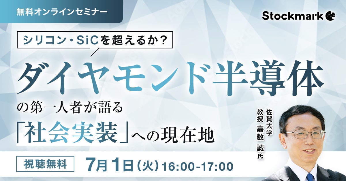 【7月1日(火) 無料セミナー】『シリコン・SiCを超えるか?ダイヤモンド半導体の第一人者が語る「社会実装」への現在地』を開催(ストックマーク主催)