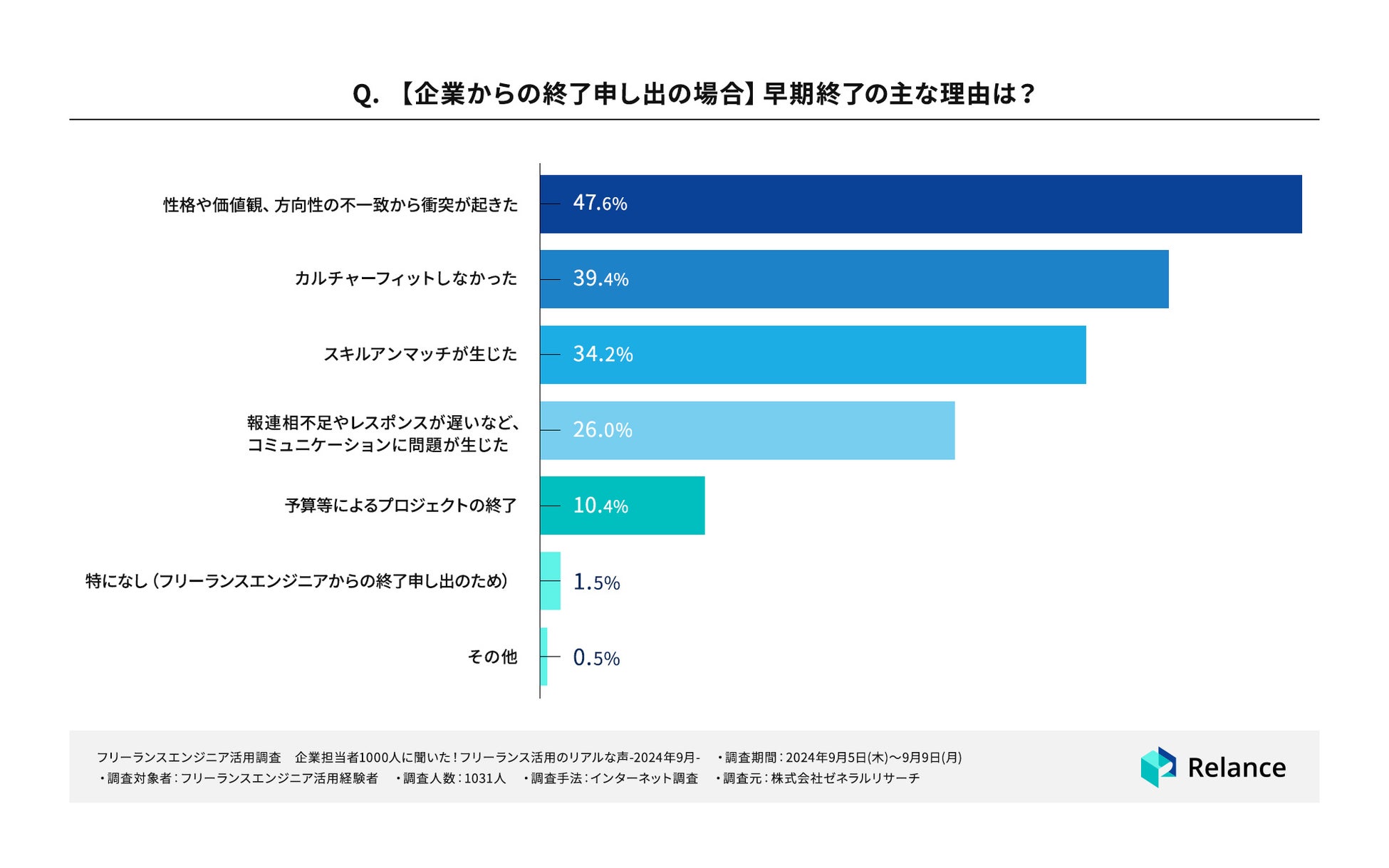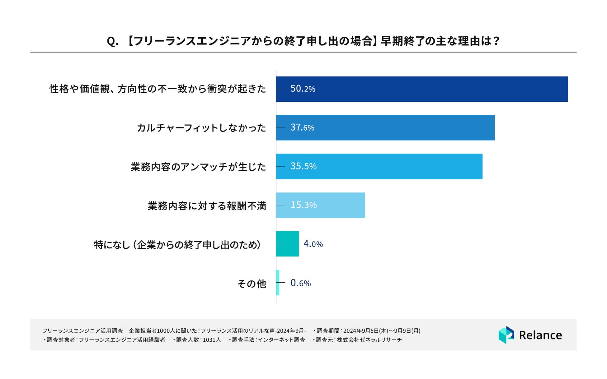【フリーランスエンジニアからの終了申し出の場合】早期終了の主な理由は?