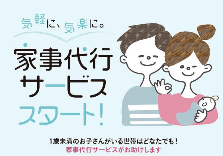 出産後の子育て世帯を応援するため、1歳未満の子どもがいる世帯の方に、民間事業者が提供する家事代行サービスが500円で利用できるクーポンを配布。