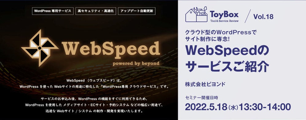 2022/5/18(水)ToyBox Vol.18【無料】クラウド型のWordPressでサイト制作に専念! WebSpeedのサービスご紹介