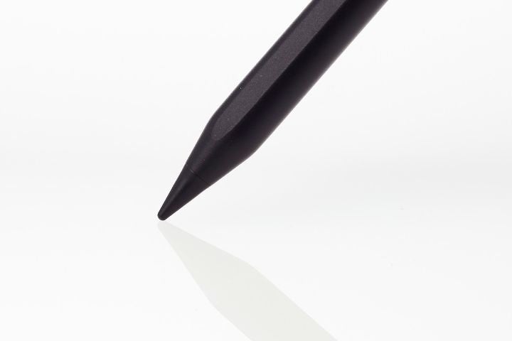 当製品は、傾きを検知し、筆記具のように太さを変えて絵や文字を書くことが可能です。手のひらが画面に接触した状態でも、パームリジェクション機能によって、誤作動を防止します。ペン先が2.0mmと極細で、指先でのタッチや非電池式のタッチペンによる操作に比べ繊細な描き込みができます。ペン先は導電性に優れたポリアセタールを採用し、従来品では反応しづらかったガラスフィルムの上からでもストレスなく滑らかな操作が可能です。磁石がついているため、使用しない時はiPadにピタッとくっつけて収納ができます。また、デスクの上で転がりにくいD型の形状を採用しています。