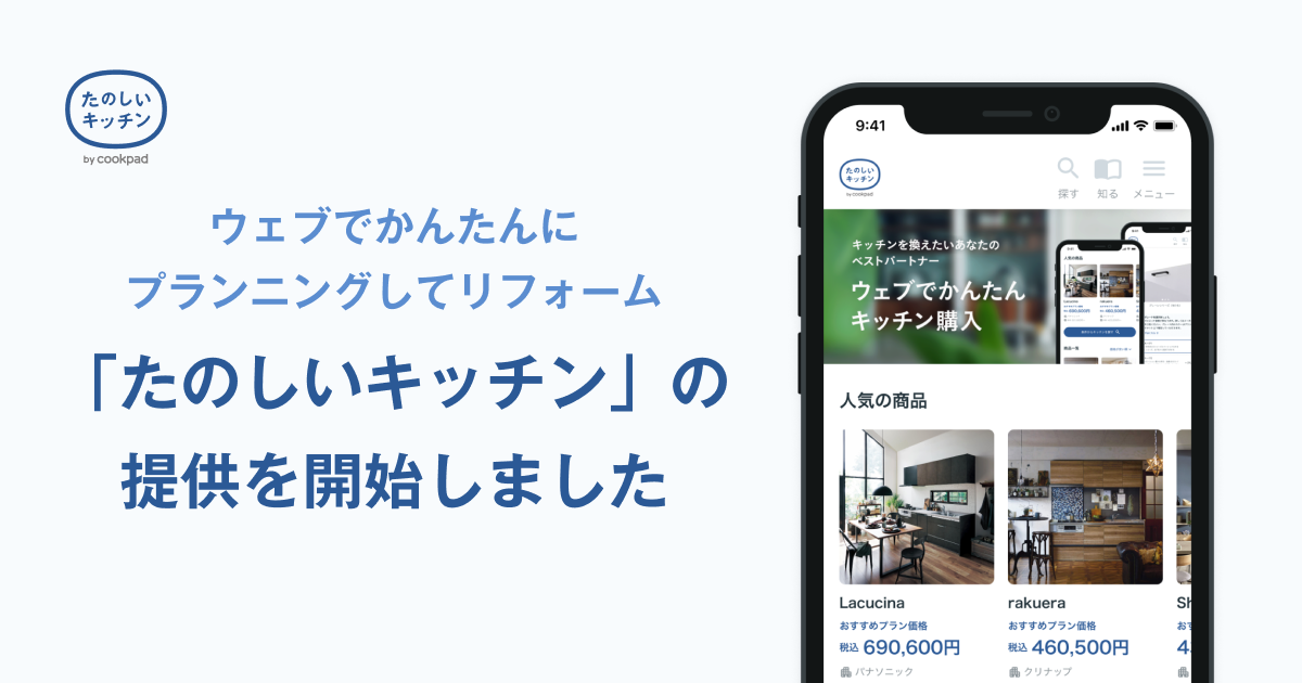 クックパッド株式会社は、ウェブでかんたんにプランニングしてリフォームできる、キッチンECサービス「たのしいキッチン」の提供を開始しました。