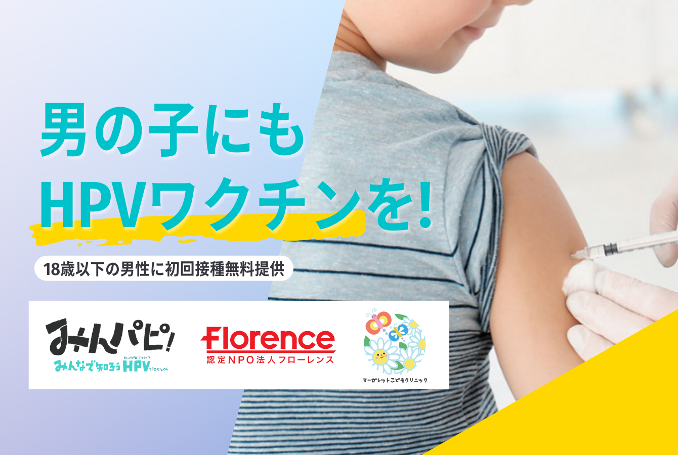 フローレンスグループ、およびみんパピ!では、男女問わずHPVワクチンを接種することの必要性を訴えるためのアクション『男の子にもHPVワクチンを!』を実施し、啓発活動の一環として、1月23日~3月31日の期間、9~18歳の男性にHPVワクチンの無料接種を提供しています。