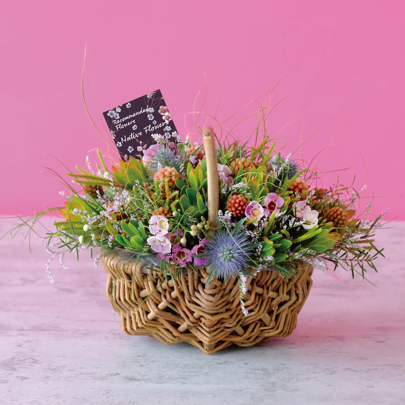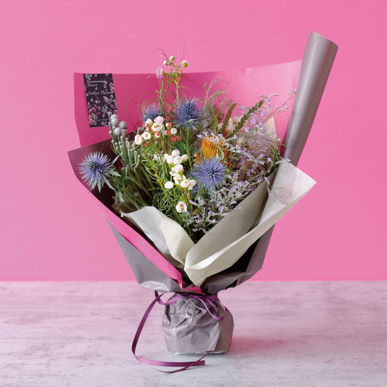ショップおすすめのネイティブフラワーを程よいボリュームのブーケに仕上げました。季節の贈り物におすすめです。