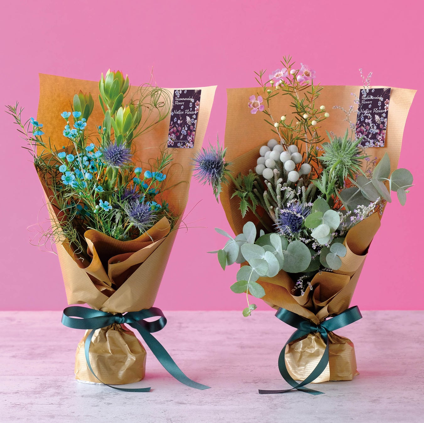 ショップおすすめのネイティブフラワーをシンプルなブーケに仕上げました。持ち運びしやすいコンパクトサイズなので、気軽なギフトやご自宅用にぴったりです。
