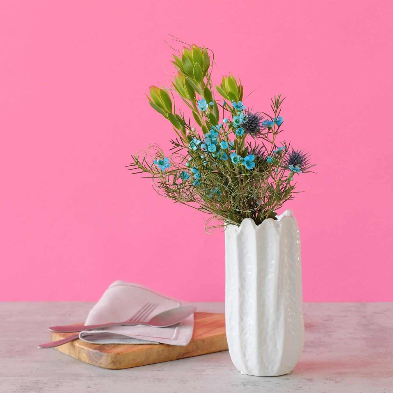 丈夫な花が多いネイティブフラワー。長持ちさせるポイントは、切り口を新しくして水を吸いやすくすることです。水替えの際にぜひ切り戻しを行ってみてください。また、長さは基本的に短い方が花持ちも良くなります。くたびれてきたら思い切って茎の長さを短くしてみましょう。