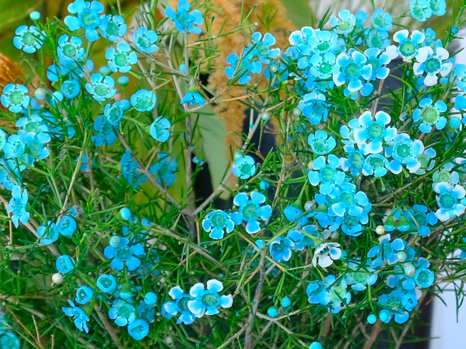 ※代表的なネイティブフラワーであるワックスフラワーを紹介しています。写真は青く人工的に染色したものです