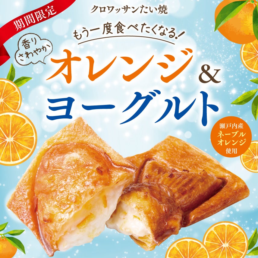 “瀬戸内産オレンジ・北海道産ヨーグルト使用”クロワッサンたい焼 新作 『オレンジ&ヨーグルト』が登場!
