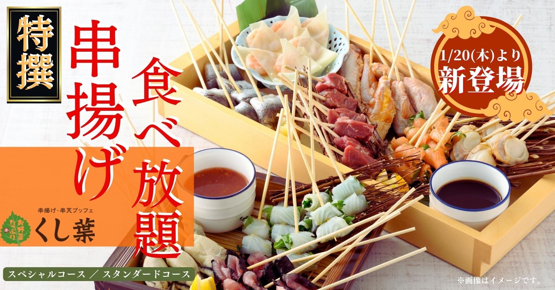 【お得なクーポンキャンペーン同時開催!】変わり種で新たな魅力満載!串揚げ・串天ブッフェ「くし葉(くしよう) ワールドポーターズ」にて、バラエティー豊かな9種類の特撰串が新登場!