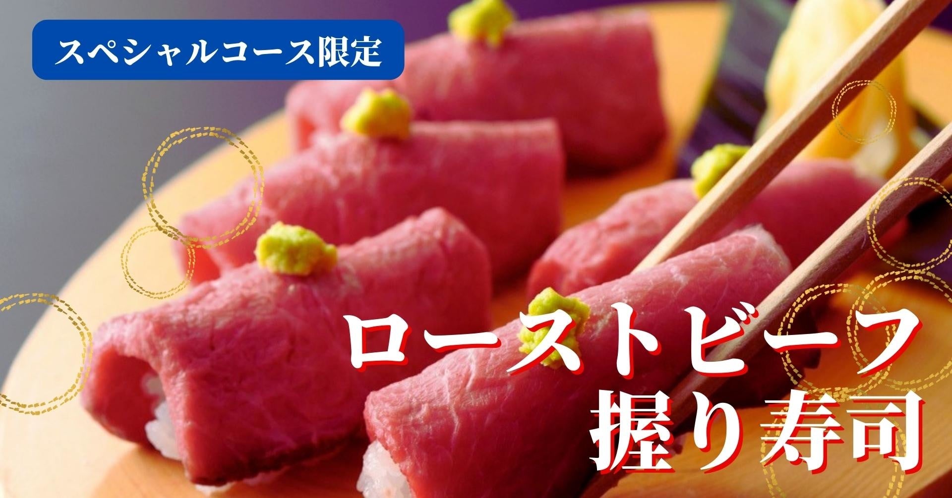 そして、スペシャルコースでは、5種の特撰串と『蒸し牡蠣・サーモンチーズ・まぐろ磯辺・すずき大葉』の4種の創作串、更に『寿司食べ放題』ではローストビーフ握り寿司も加わり、選ぶ楽しさ倍増!!まさにスペシャルなコースとなっております!