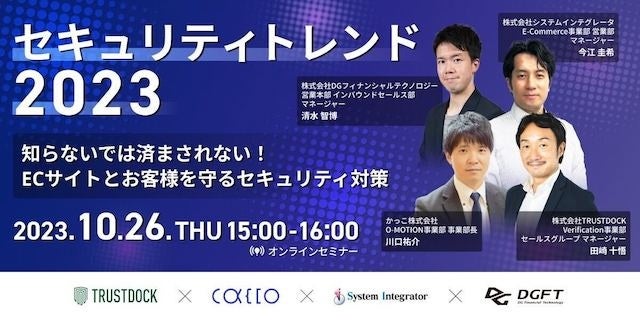 TRUSTDOCK × かっこ × DGフィナンシャルテクノロジー × システムインテグレータ、「ECサイトとお客様を守るセキュリティ対策」ウェビナーを2023年10月26日に開催