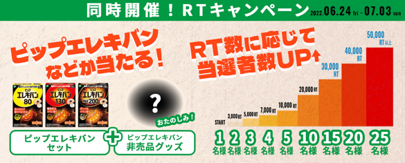 対象ツイートのリツイート合計数に応じて、当選者数が増えるフォロー&RTキャンペーンを同時開催します!