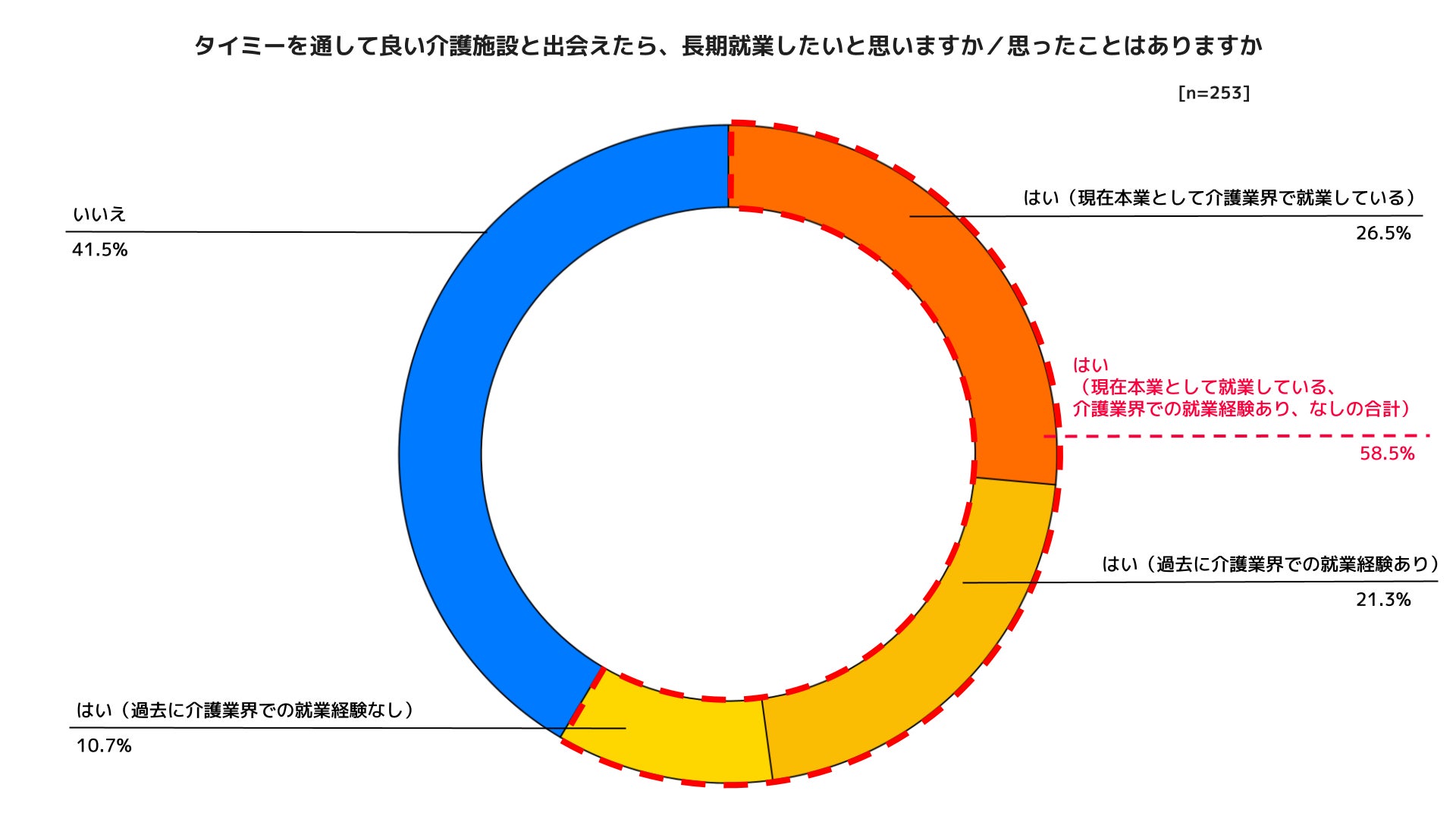 よい職場と出会えたら、介護事業者での長期就業を希望する人は58.5%